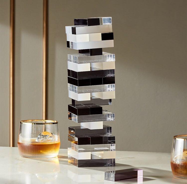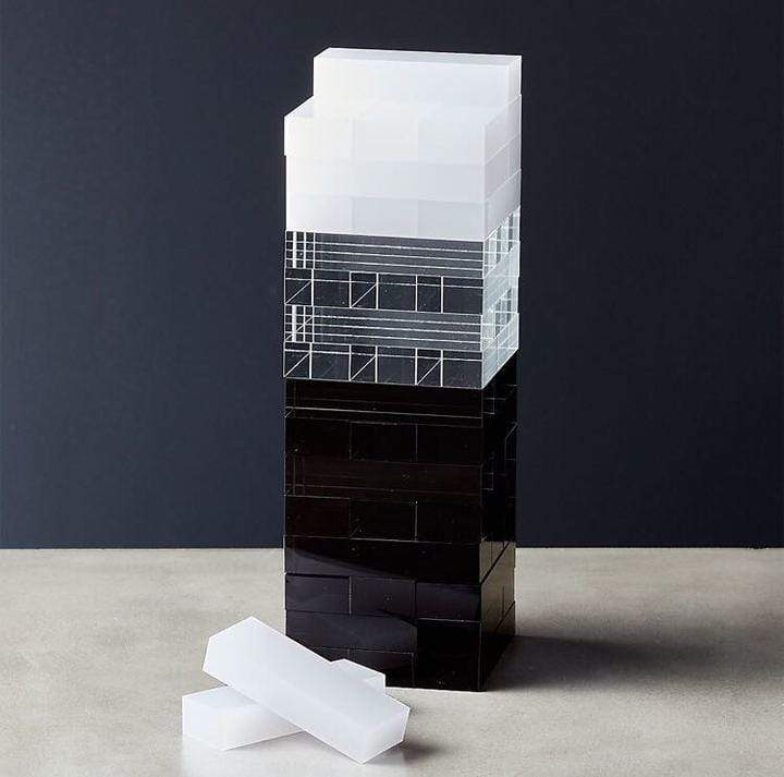 Gorgeous to look at, more fun to play. Forty-eight clear, frosted, light and dark grey pieces create an ombre effect inside a tall clear acrylic box. With no player limit, this game of delicate balance is great for date nights, dinner parties and total ragers.