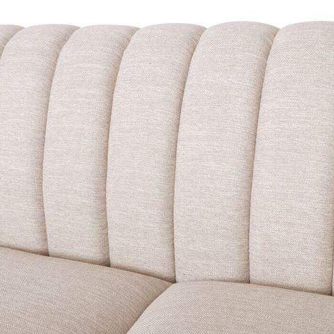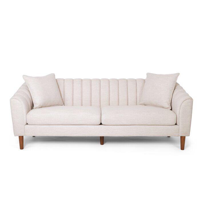 Offer your home a centerpiece of exceptional design and texture to create an atmosphere of refinement throughout your interior decor. This three-seater sofa brings your living room a stunning look with its deep channel stitching, plush upholstery, and sloped arms. This sofa stands as a streamlined statement piece that can change the whole flow of your interior decor, creating an open, clean space. From its cozy design for its lovely tapered legs, this sofa will bring excellent comfort and style to any room.